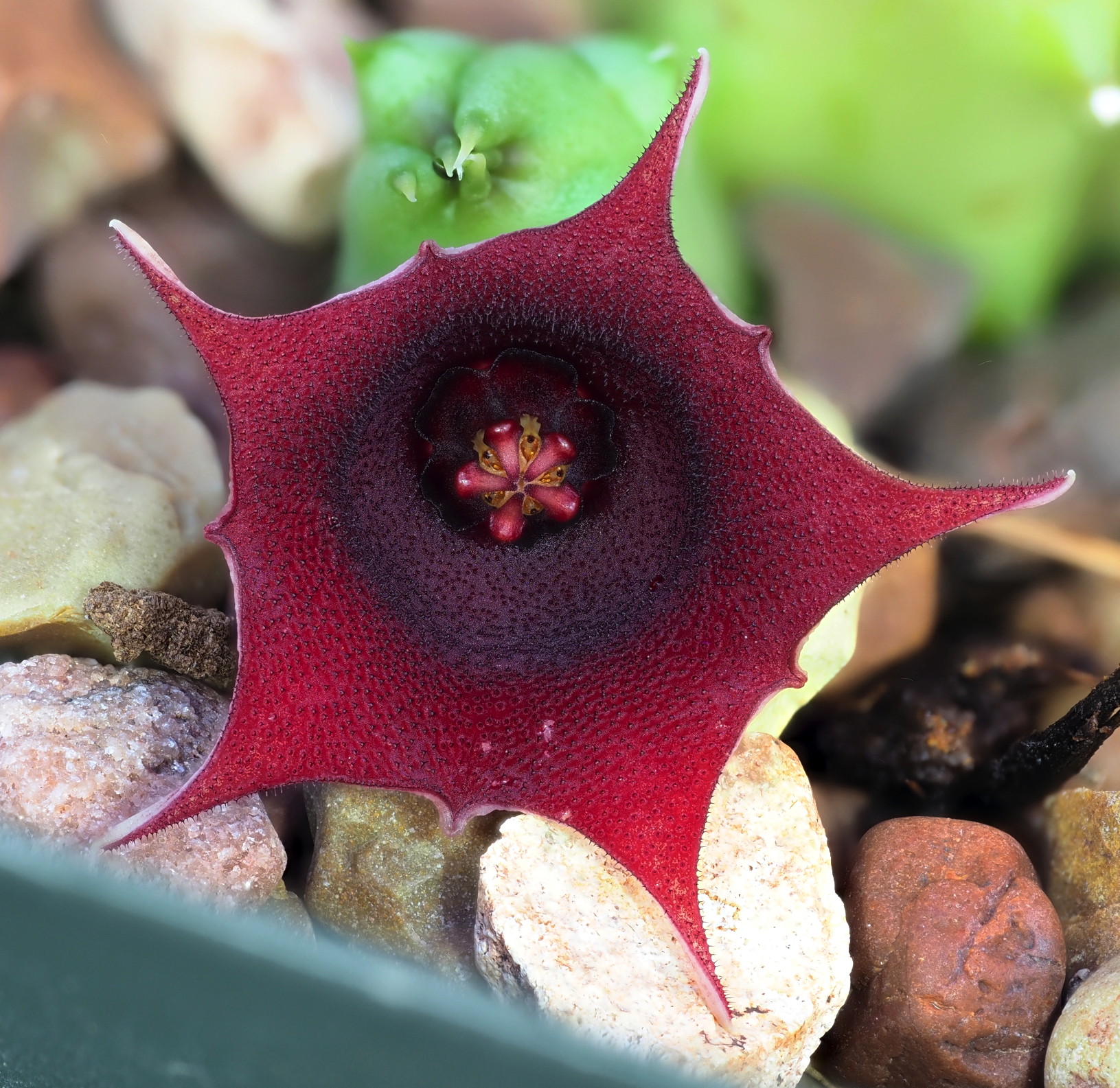 All the pictures above were taken in a greenhouse in December. These are succulents from Southern Africa which flower in the Springtime-summer in the southern hemisphere. The flowers are of plants in the genus Huernia, Lithops (white and yellow flowers) and the last plant is a baby Kalankoe tomentosa. Click on any picture to get a larger view. Photos by Michael Douglas