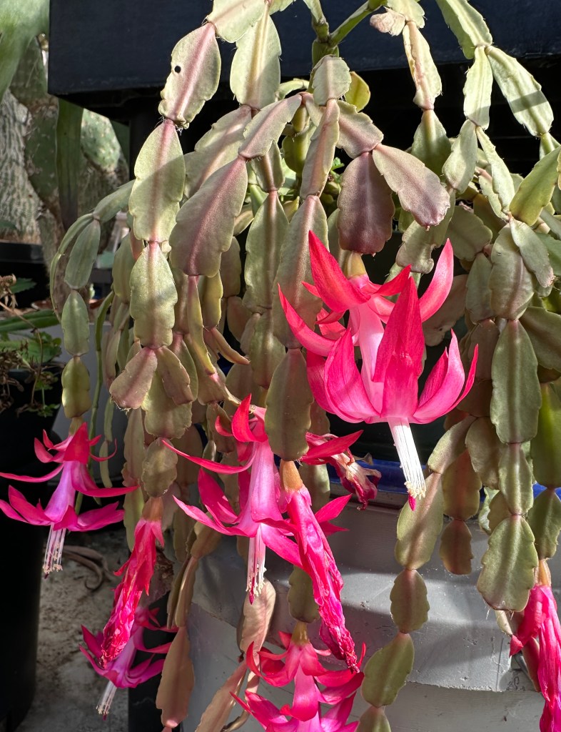 Shown above is the cactus known as the false Christmas cactus (Schlumbergera truncata). It is found in a small area of tropical moist forests in the coastal mountains of south-eastern Brazil. Photographed in our greenhouse in February by Michael Douglas